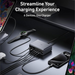 With a total output of up to 200W, this charging station is capable of powering up to six devices at the same time. When two USB-C ports are used simultaneously, each can deliver up to 100W, supporting high-demand devices such as MacBook Pro laptops while maintaining consistent performance across all connected devices.