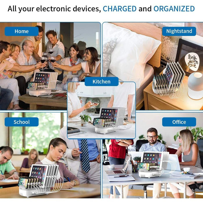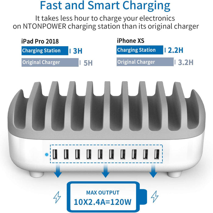 Ntonpower USB Charging Dock 10 Ports Charging Station - White
